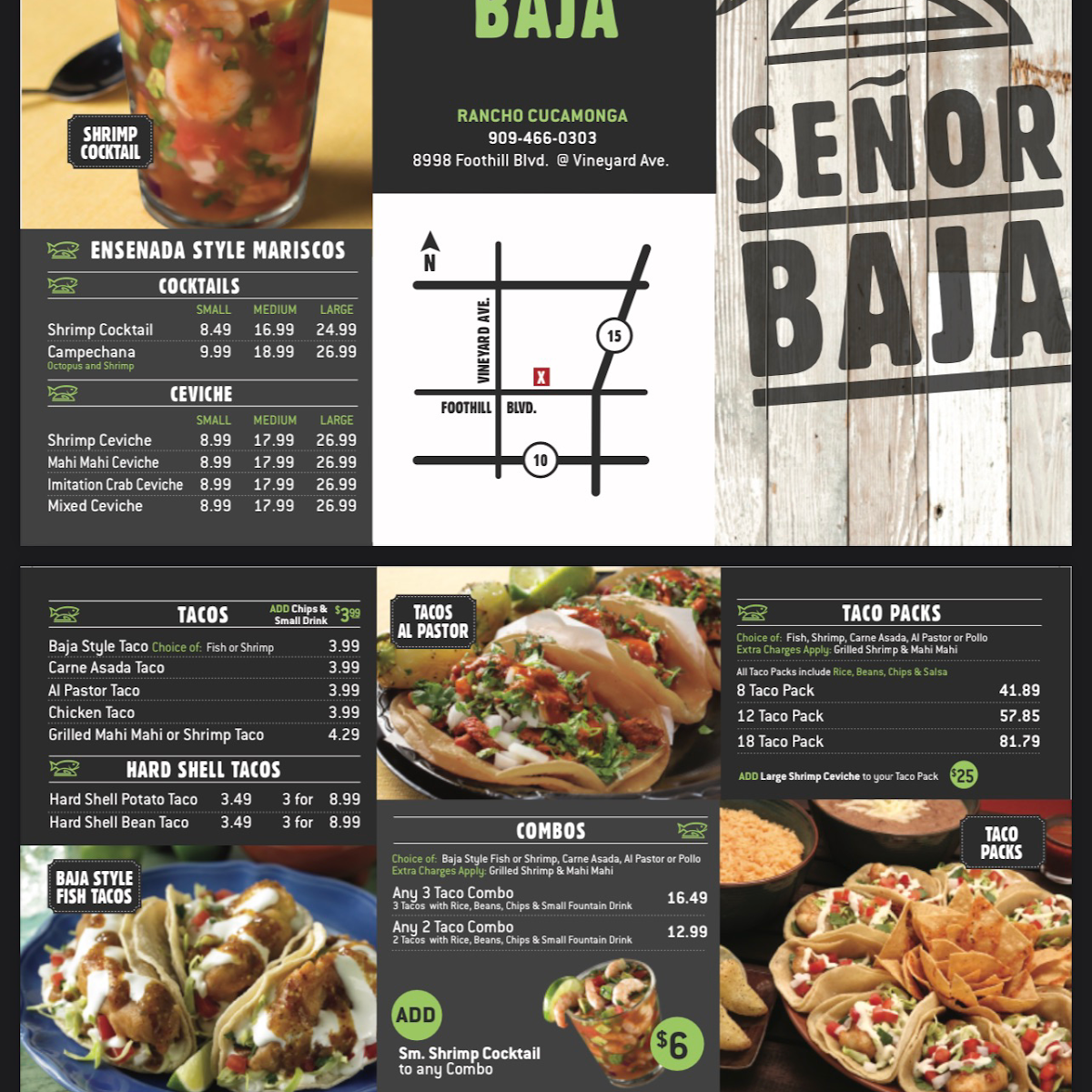 Senor Baja, located at 8998 Foothill Blvd, Rancho Cucamonga, is a culinary gem celebrated for its fresh Mexican seafood offerings. Known for their exceptional shrimp and fish tacos, patrons rave about the authentic flavors reminiscent of Ensenada's coastal eateries. The vibrant atmosphere is complemented by friendly staff who enhance the dining experience with thoughtful gestures, such as complimentary dishes. Their renowned yellow chili sauce and generous taco portions delight every visitor, making it a must-visit destination for locals and travelers alike. Whether you crave a grilled shrimp burrito or crispy potato tacos, Senor Baja promises a satisfying feast that keeps customers coming back.